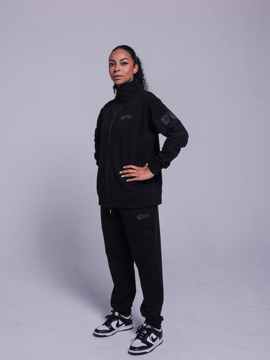 4GAINS BLACK TRACKSUIT JACKET [LOGO PUFF PRINT]