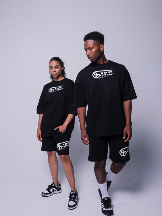 4GAINS BLACK OVERSIZED TEE [SPORTSWEAR LOGO PRINT]